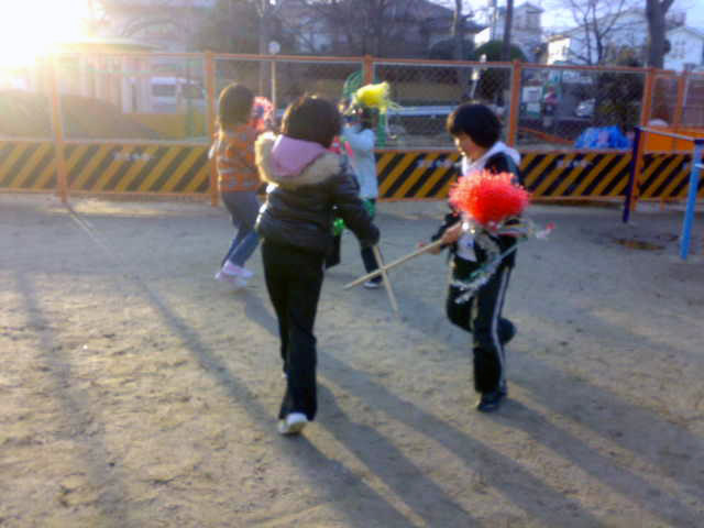 百鬼節分祭には、いちおうストーリーがございます こどもたち扮する妖怪が、妖怪ストリート内にある大将軍八神社で遊んでいると、貧乏神がやってきて、やいのやいのとからみだす 今年で3回目の貧乏神の襲来に、妖怪たちはしっかりと豆を用意して待っていた 触ればたちどころに貧乏になるお札「貧乏紙」なんて最終兵器を片手に乗り込んできた貧乏神でしたが… 妖怪たちの豆攻撃に、今年もズタボロになって逃げて行きましたとさ さてさて、こんなにわかりやすいお話でも、やるとなればそれなりに練習しなければなりません 今日の写真はそんな練習風景から一枚 公園で祭りのおどりを練習する「まーちゃん」「しーちゃん」と、先生役の「あんりちゃん」「あおいちゃん」です おどりはいつもお囃子を演奏してくれる和太鼓サークル「和太鼓ドン」さんに教えていただいたもの ようかいパレードなどのイベントでは、みんなで必ず披露します 踊りの上手な「あんりちゃん」「あおいちゃん」は教え方が上手なのか、 「まーちゃん」「しーちゃん」の呑み込みがいいのか、 二人はものの1時間とたたないうちに、すっかり踊りを覚えてしまいましたよ すごい! でも当日は「あんちゃん」と「しーちゃん」は風邪でお休み、残念 また次回、期待しています つくじゅにのみんなにはほかにもやってもらうことがいろいろありました まずはオープニング・エンディングのセリフ 商店街を逃げ回る貧乏神との歌の掛け合い 一般参加してくれるお友達へのフォロー などなどなかなかに盛りだくさんです セリフといえば声の大きな「ダイキくん」 「ウメちゃん」と一緒にオープニングでの最初のセリフを担当しました 「キョウくん」「しげっち」は、イベントの流れや今何をするべきかを把握することができるようになってきました イベント当日も、一般参加のみんなにしっかりと声をかけてくれていました 「みやりん」は練習に参加できなかったけど、当日はアドリブでよくついてきてくれていました 「なぎっち」はようかい軍団のリーダーとして、みんなをひっぱっていく役目です 「あいぼん」は貧乏神役でちょっとかわいそうだったかな この日は、それぞれの役割を決めたり、 みんなで声をだしながら、歌の掛け合いを練習しました あとは本番を迎えるのみ!! で、本番当日・・・みんな豆投げるのに必死で、段取りほとんどすっとんでました~(笑) ま、それぐらい熱い祭りってことで、どんとはれ PR |
